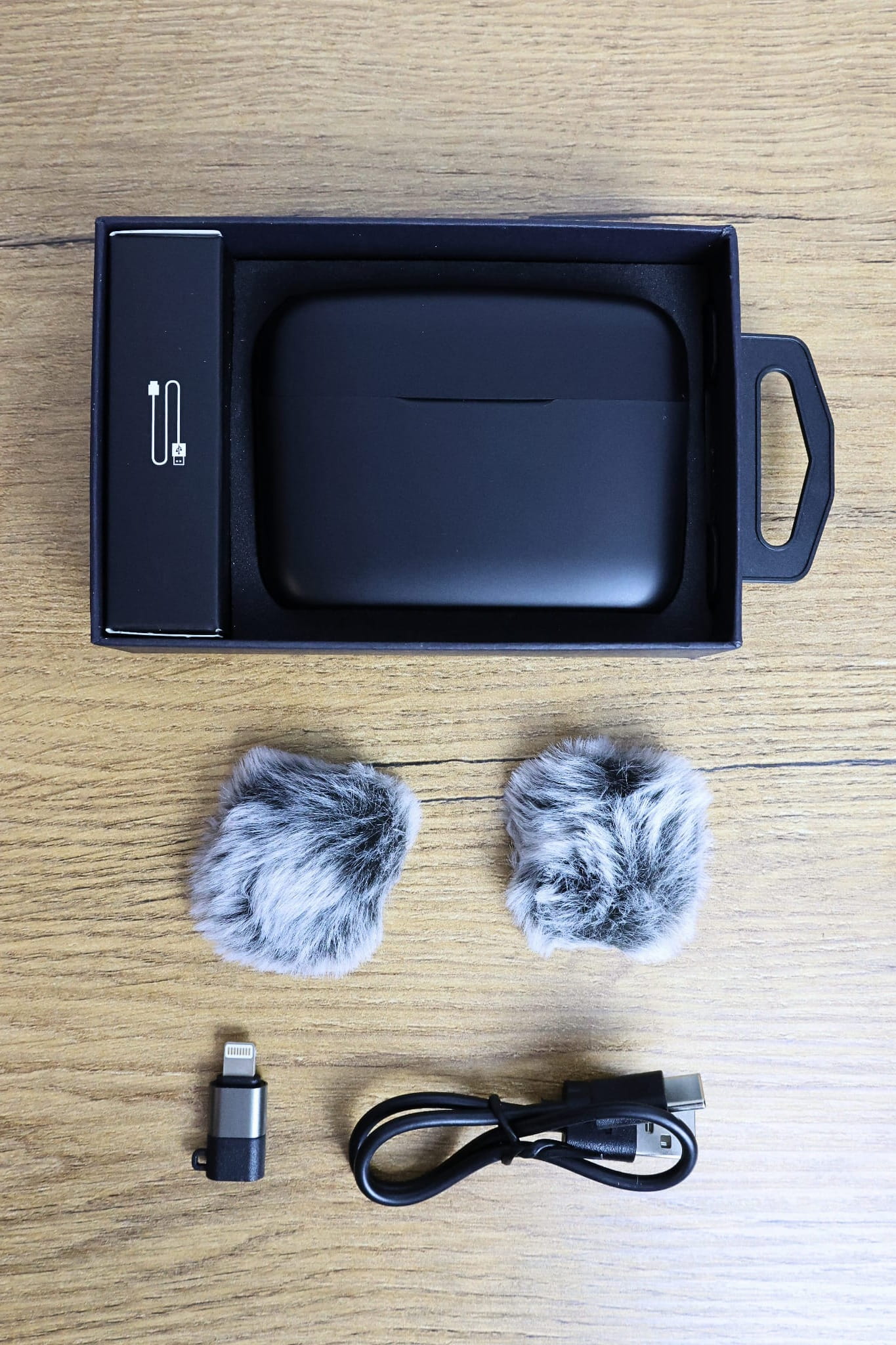 Model MK-11 Duo współpracuje z telefonami, tabletami i laptopami wyposażonymi w port USB-C lub Lightning (iOS). W zestawie znajduje się adapter Lightning, który umożliwia podłączenie mikrofonów także do iPhone’ów – bez żadnych dodatkowych akcesoriów.